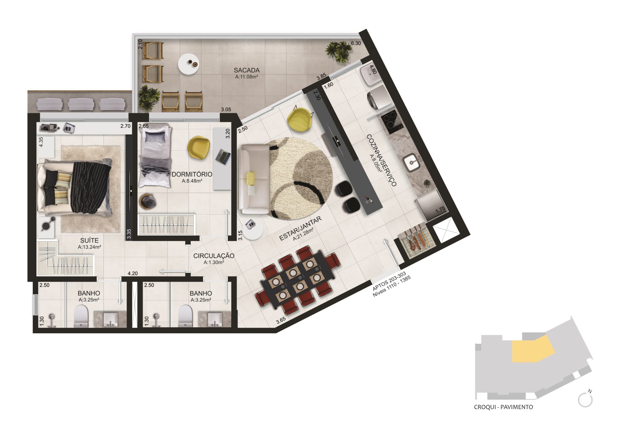 - Apartamentos de dois e três dormitórios